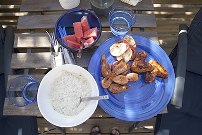 – Det blir mest de vanliga: paprikor, sparris, tomater ibland. Det kan bli rotfrukter också, potatisen delar jag i halvor och låter dem ligga på en bra stund. Själv har jag inte förstått det där med citron ännu, det sägs att den blir så god på grillen …