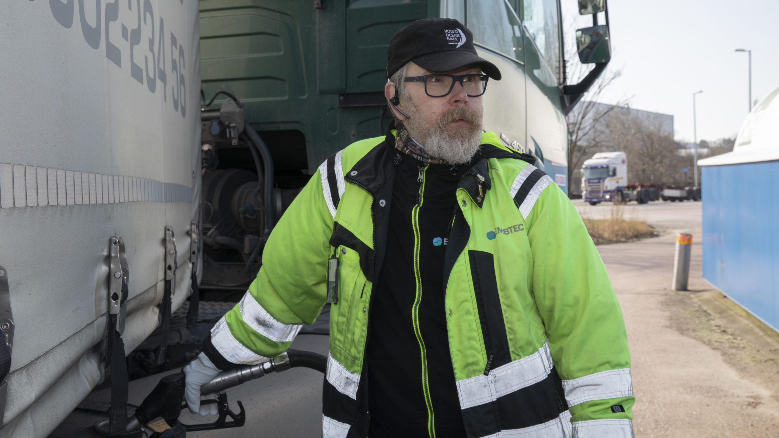 Det är onsdag eftermiddag och bara timmar kvar innan Volvo klappar igen. Lundbyföraren Anders Jansson tankar en sista gång innan det är dags att ställa ekipaget.