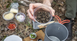 Men så visar insektskocken en burk med döda kryp, syrsor, inhämtade direkt hos en uppfödare. Frysta och tinade. Det är de han ska röra ihop till insektsfärs, tillsammans med några nävar ovetande myror, hemmagjord glace, olja, salt och peppar.