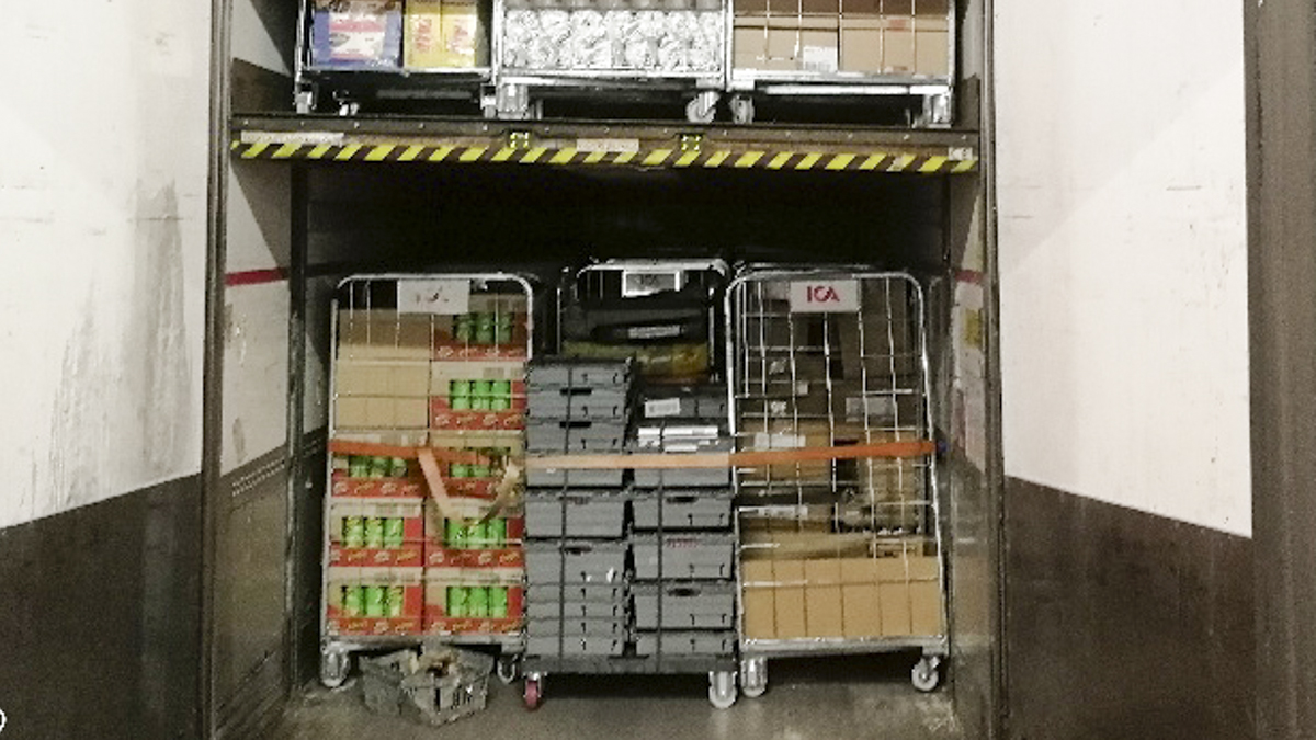 Matjätten Ica har i många år haft ett transportsystem där burar med livsmedel fraktas i två våningar på lastbilar och släp. Det övre planet lastas först och hissas sedan upp och ska säkras genom särskilda låsklackar.