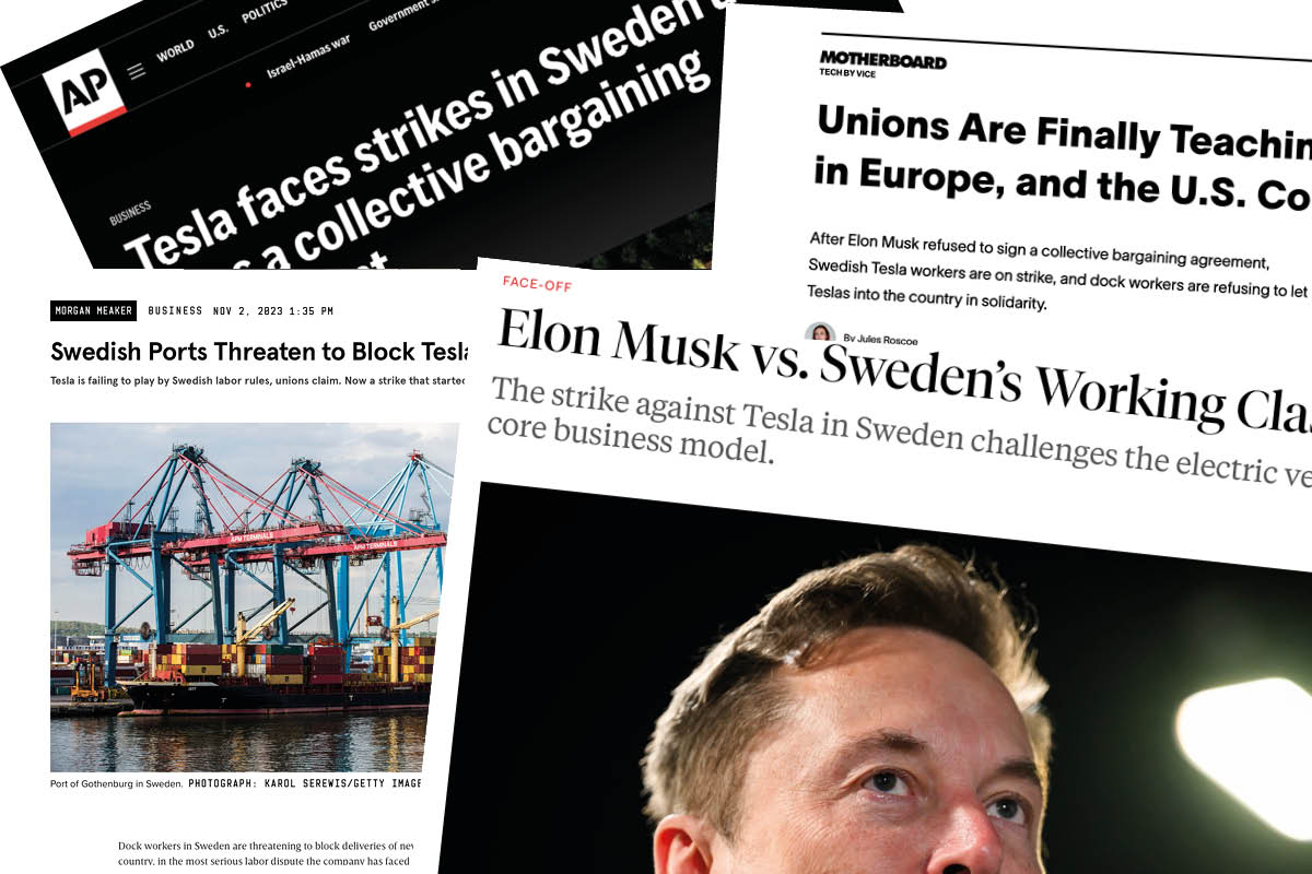Mediahuset Vice skriver Unions Are Finally Teaching Elon Musk a Lesson in Europe, and the U.S. Could Be Next. De berättar om Transports blockad i hamnarna och att det finns ett brett stöd för stridsåtgärderna över hela Europa.