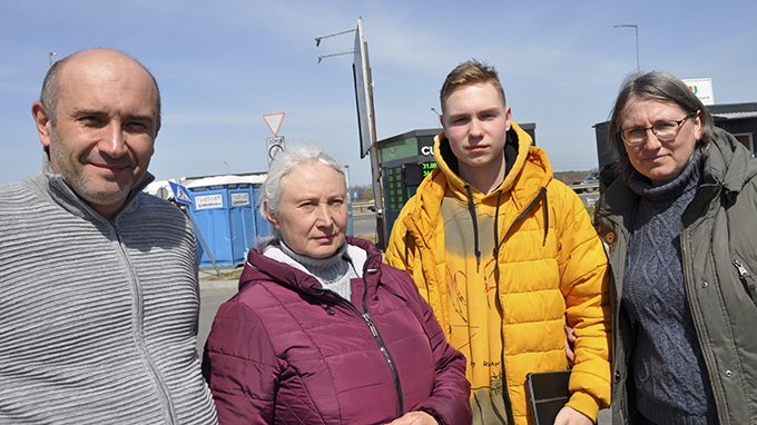 Framme vid gränsstationen i Krakovets blir det ett par timmars väntan utanför en bensinmack. En förare från tyska Düsseldorf, som ska komma med humanitär hjälp, är sen.