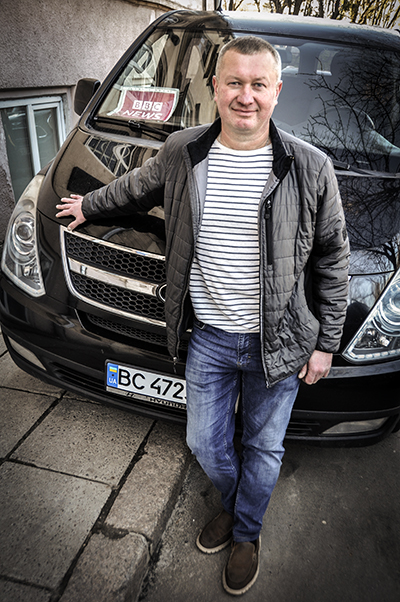 Taras Ostapyk är Volodymyr Ladykas chef. Efter krigsutbrottet försvann de flesta uppdragen till firman. Mycket snabbt visade det sig att det fanns hur mycket jobb som helst för förare som vill jobba som volontärer. Flyktingar från de krigsdrabbade områdena i östra Ukraina behövde köras till västra Ukraina och till grannländerna. Nästan genast startade också ett flöde av humanitär hjälp till Ukraina från utlandet.