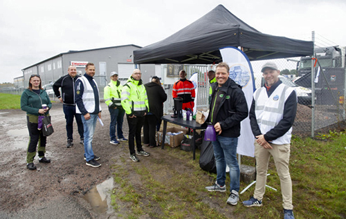 Transportare från avdelning 4 är också på plats, pratar med chaufförer, bjuder på fika och skickar med påsar – goodiebags med bra saker att ha med sig på vägen. Åkare, chaufförer och lärare från transportprogrammet är också med i tältet ute vid vägen.