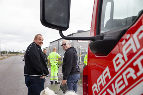 Med tanke på covid-19 blir det mer ”drive-through” och mindre tid för prat. Hur pandemin annars påverkat yrkesförarna är svårt att säga generellt, framhåller de som står i tältet: För en del, som taxichaufförer, har det slagit mycket hårt. För andra, framför allt lastbilsförare, har det blivit mer jobb. Men det faktum att alla har statusen av att jobba med en samhällsviktig funktion har positivt påverkat synen på yrkesförare.