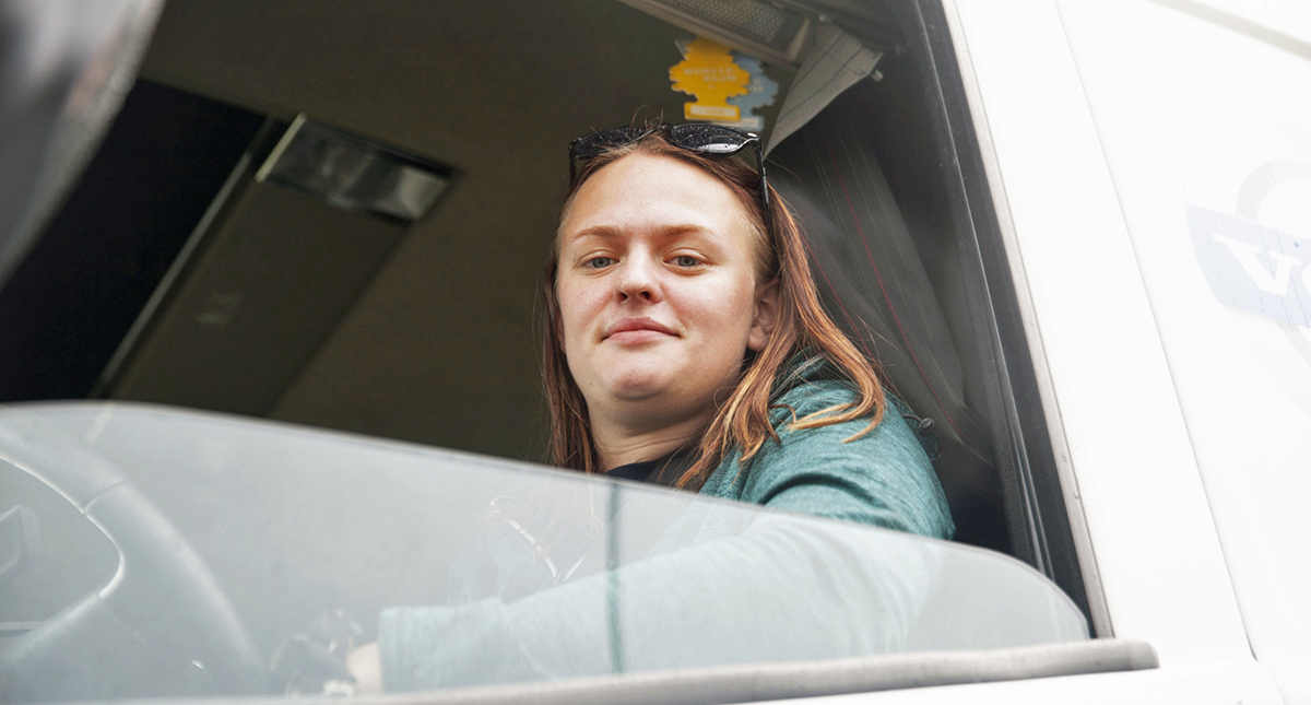 – Om jag tycker att vi är hjältar i vardagen? Jaa, det gör jag väl – vi behövs, säger chauffören Johanna Nero, som kört distribution från Vingåker på morgonen.