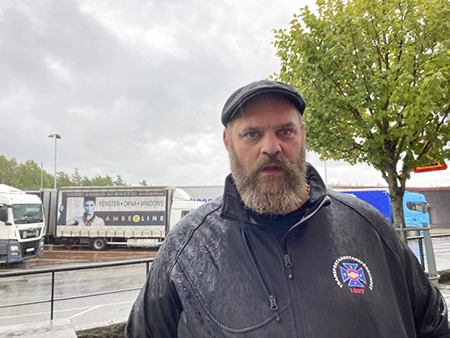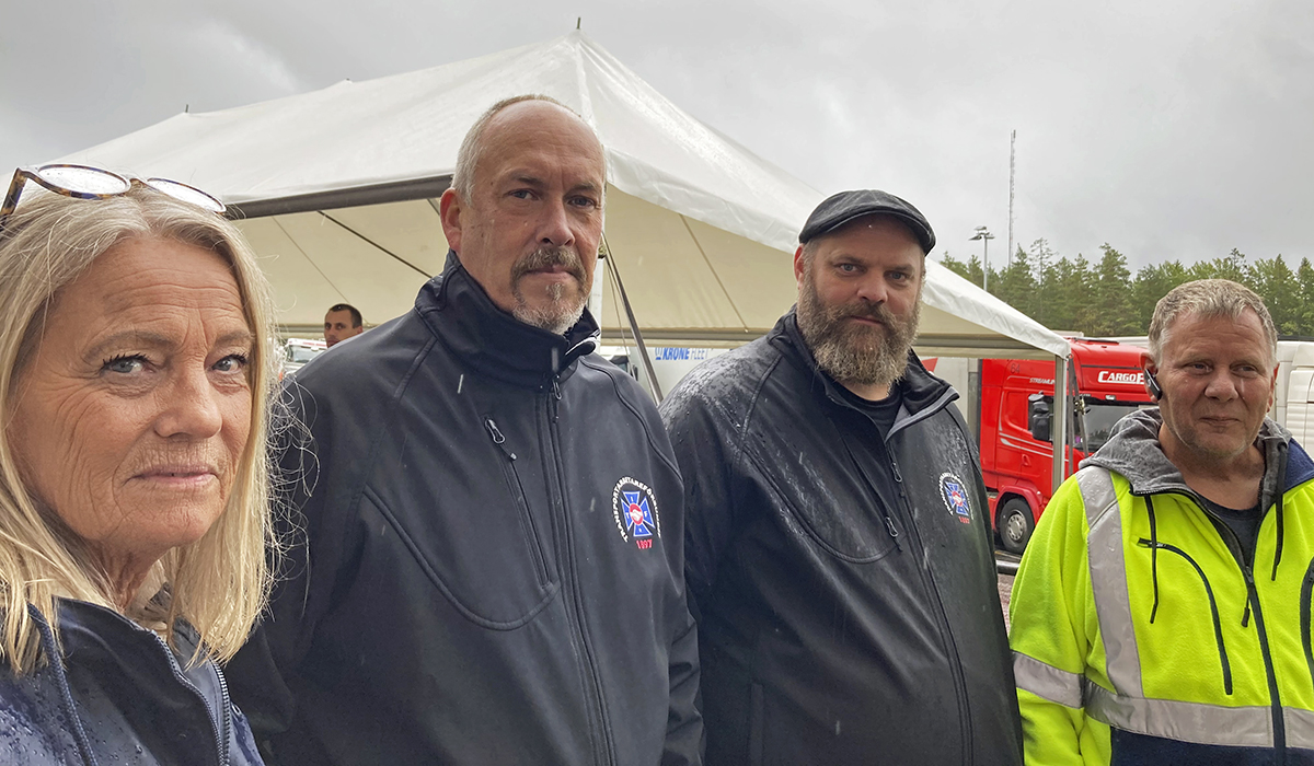 Redan vid lunchtid är det kö med lastbilar på bron över från Norge. I Svinesund är Jan Lendin, ombudsman från avdelning 55, på plats. Han är ansvarig för Transports insats vid svensk-norska gränsen.