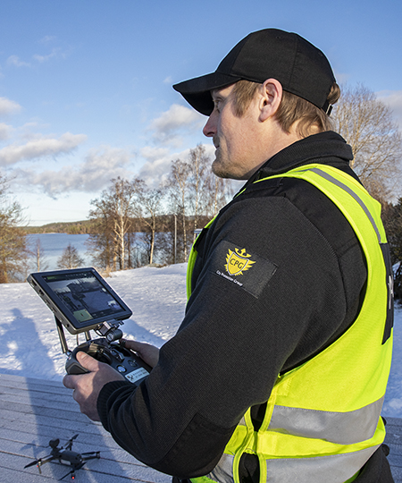 Denna januaridag stannar termometern på minus två och väktaren Jacqueline Kapronczai är på plats med kollegan och gruppledaren Daniel Jakobsson. De jobbar på ett mindre säkerhetsbolag, CPG, med bevakning av främst byggarbetsplatser i Västra Götaland. Just det har väckt företagets intresse för drönare.