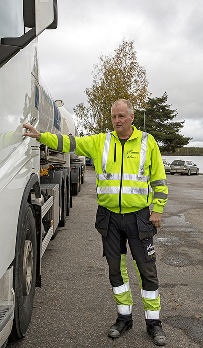 – Det vet jag faktiskt inte. Egentligen är jag pensionär, som många andra som kör. I Finland är alla bundna av kollektivavtal, och anställda har rätt till årlig lönehöjning. Avtalet är allmängiltigförklarat. Och Transport i Finland är otroligt starkt.