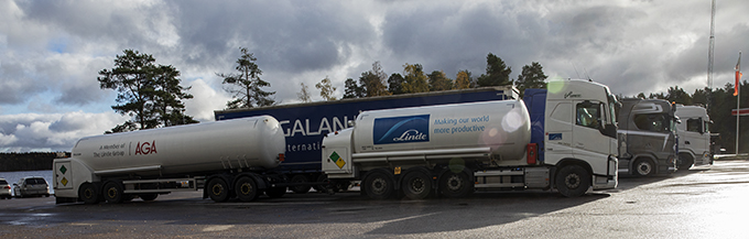 En jämn ström av lastbilar kör in på någon av de stora parkeringarna som finns på den klassiska rastplatsen mellan Gävle och Söderhamn. Här viker riksväg 83 av mot Ånge genom Hälsingland.