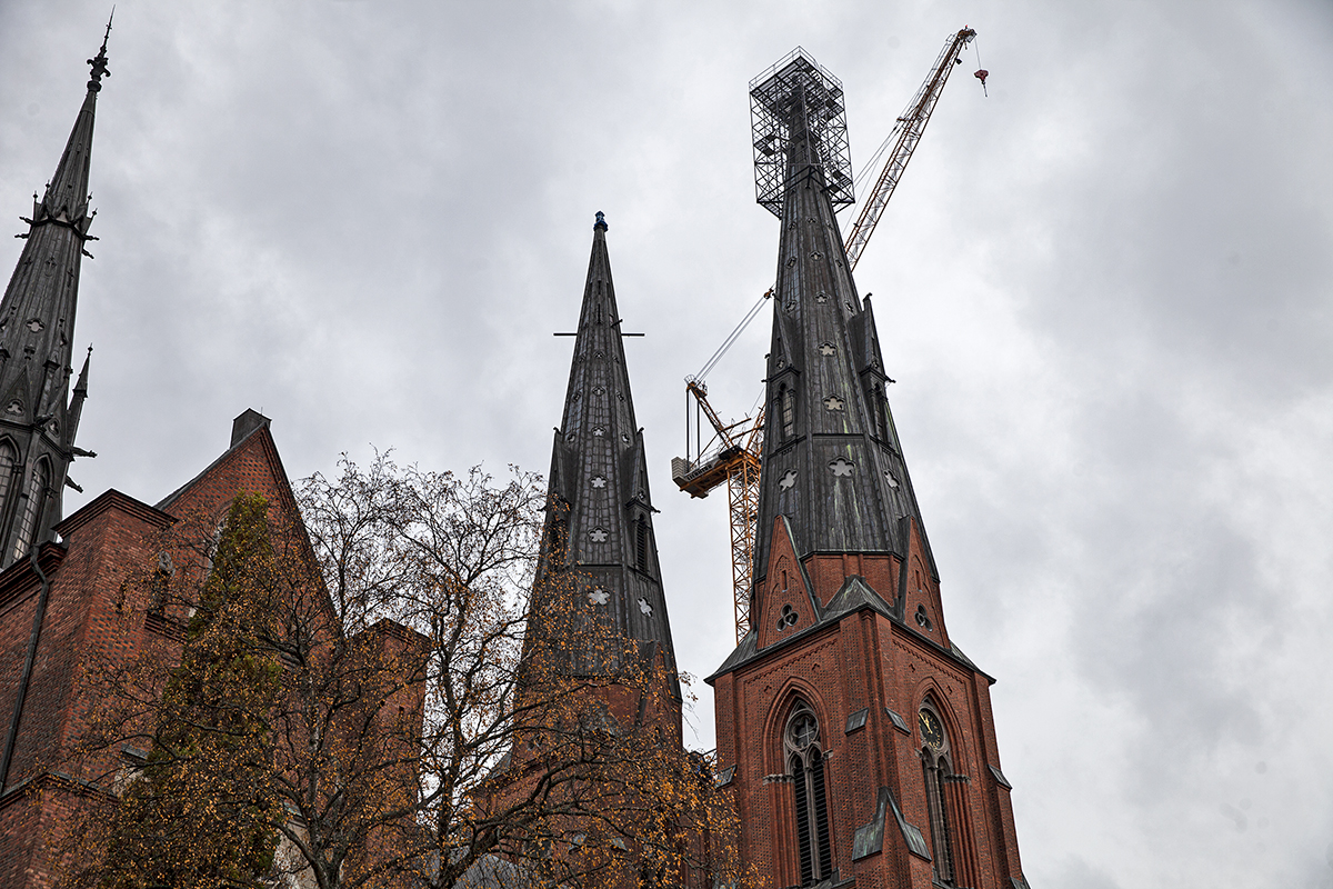 Hösten 2020 pågår åter byggarbeten utvändigt på en av Helgo Zettervalls med tiden allt mer älskade tornspiror i Uppsala.