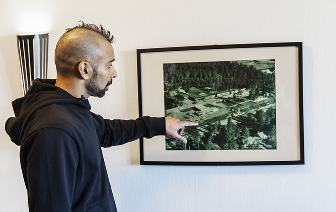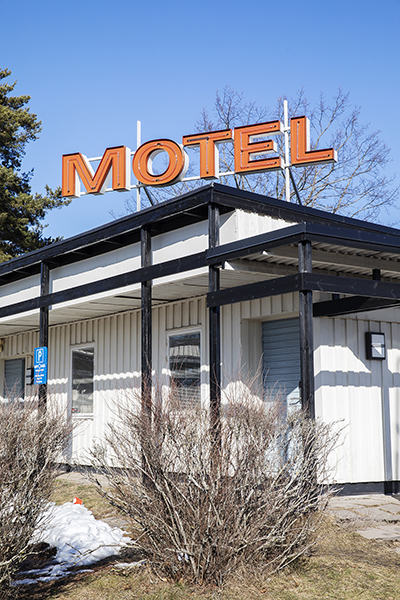– I dag är motellet och motellskylten k-märkt, berättar Kristoffer Karlsson och visar ett flygfoto från 1960-talet som sitter på väggen i restaurangen.