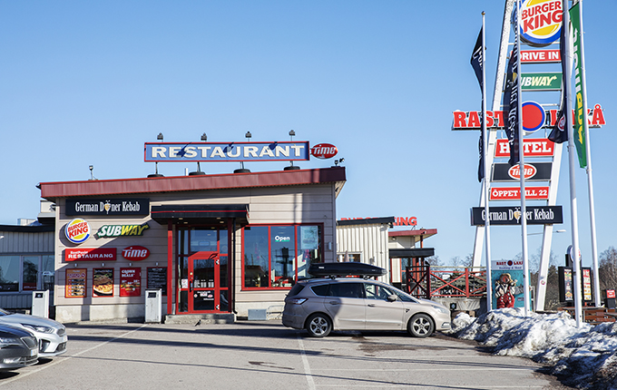Bakom restaurangen ligger ett tankställe för långtradare. Det har hunnit bli eftermiddag och Philipe Birgersson har stannat för att tanka. Han kör husdelar från Sävsjö och har ofta virke, husväggar och takstolar i lasten. Just i dag är han på väg mellan Västerås och Höganäs.