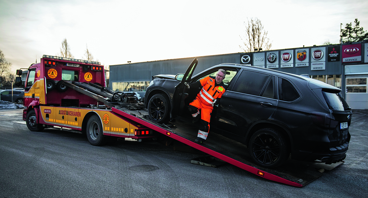 – Jag körde taxi och bud innan jag ramlade in i bärgarjobbet och fick lära mig med tiden. Om man stöter på ett nytt problem kan man alltid ringa en kollega och fråga. Det är ju en del nya grejer med nya bilar. Man kan till exempel inte använda en vanlig domkraft på en Tesla, för då går den sönder. Sådant där lär man sig allt eftersom.