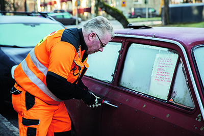 – Nej. Oftast tar vi ett uppdrag i taget och gör klart det. Om det händer en trafikolycka får vi kanske prioritera om. Men vi är ju flera bilar ute samtidigt. Min chef tycker dessutom att det är bättre att vi kör i 70 än 80. Vinsten i att köra snabbare är ändå så liten.
