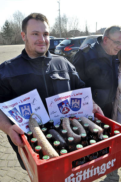 Också Göttingens invånare visade ett stort hjärta och på några få dagar kunde alla tre fordon fyllas med humanitär hjälp – kläder, sovsäckar, desinfektionsmedel, masker, djurfoder och annat. Alla de sju personerna i konvojen, varav fyra brandmän från Göttingens frivilliga brandkår, ställde upp som frivilliga. De tog ledigt från sina jobb och körde nästan i sporrsträck 1 200 kilometer från Göttingen till Lviv.