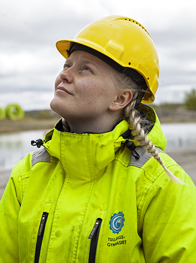 Hon och klasskompisen Malva Hedström Nilsson har valt att fördjupa sig i kranbilar. Hela dagen går åt till att flytta gummidäck, tunga betongklumpar och stora plastbehållare.