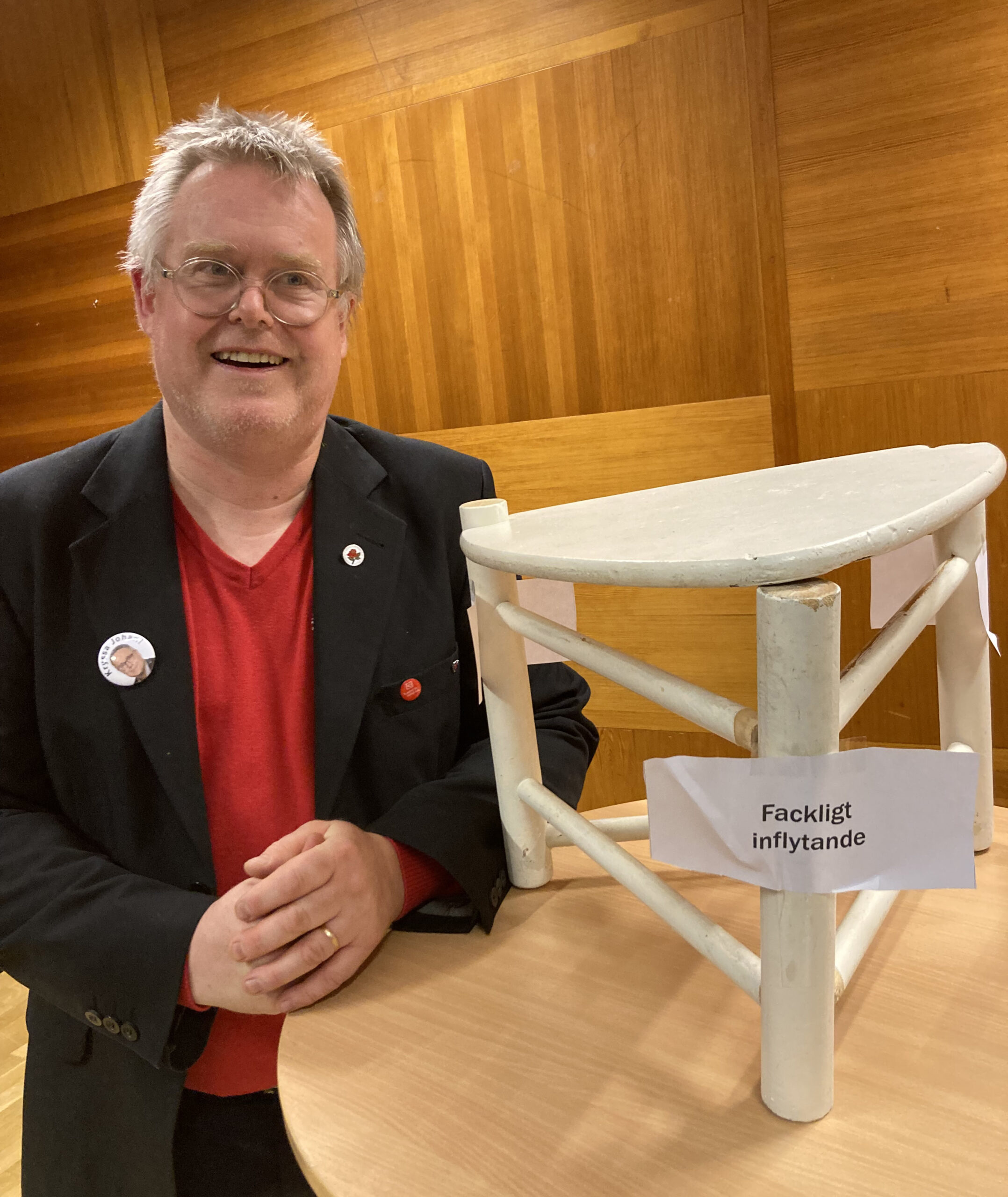 Med en trebent pall illustrerade transportarna betydelsen av att alla ben bär. Om välfärden ska värnas måste alla hålla.