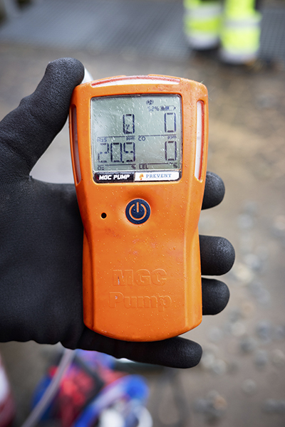 – Han använder mätaren eftersom det är ett slutet utrymme där. Det ska arbetas intill och då ska han se till att det inte finns några brandfarliga gaser där som fattar eld eller gör att någon tuppar av.
