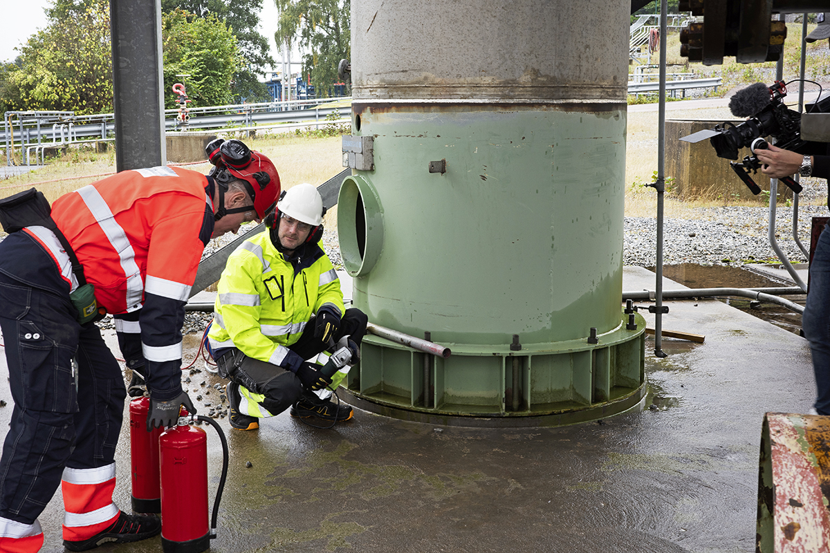 Men det är ytterst sällan sprinten behöver dras ur brandsläckaren. Det berättar instruktören Ulf Sahlin som inte är med i filmen, men jobbar på anläggningen. Han har jobbat med säkerhet och arbetsmiljö i över 20 år och har bara varit med om en handfull tillfällen som brandsläckarna behöver användas.