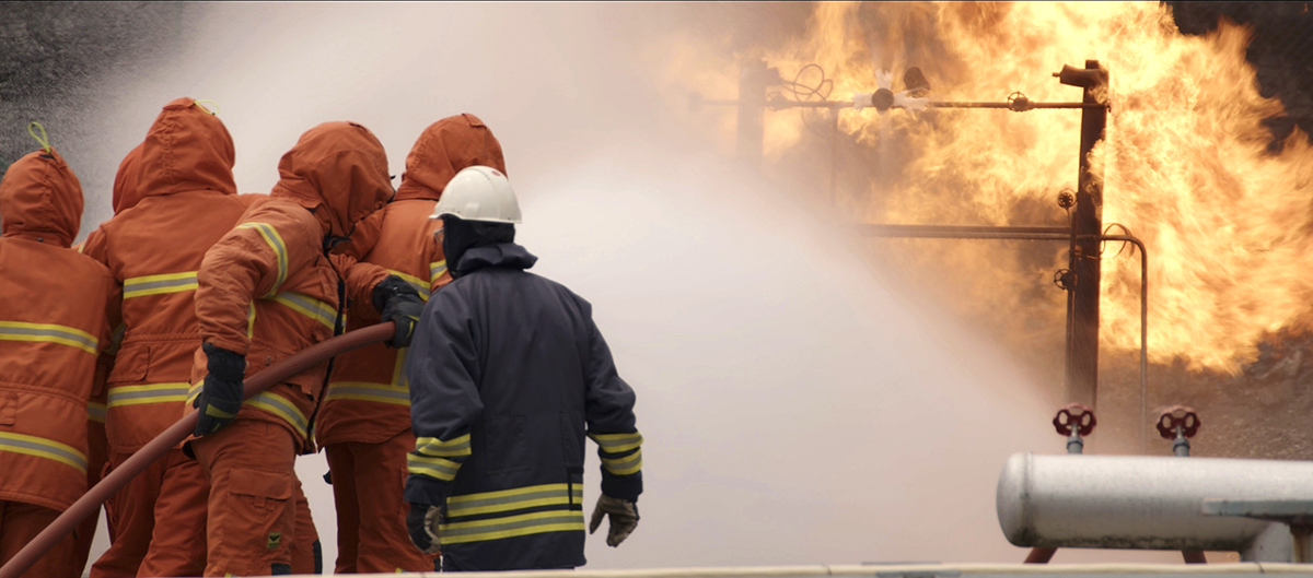 Tillbaka vid Bränningen. Träningsanläggningen där tusentals utbildas i säkerhet varje år. De flesta som går utbildningarna kommer från industrin i närområdet. En mindre del jobbar som säkerhetsvakter på Prevent safety. I området finns en uttänkt infrastruktur med vattenledningar, byggnader och gasolrör. I ett hus finns lejdare som simulerar insidan av ett fartyg. På en tågvagn vilar en rostig oljetank med Statoil-loggan på.