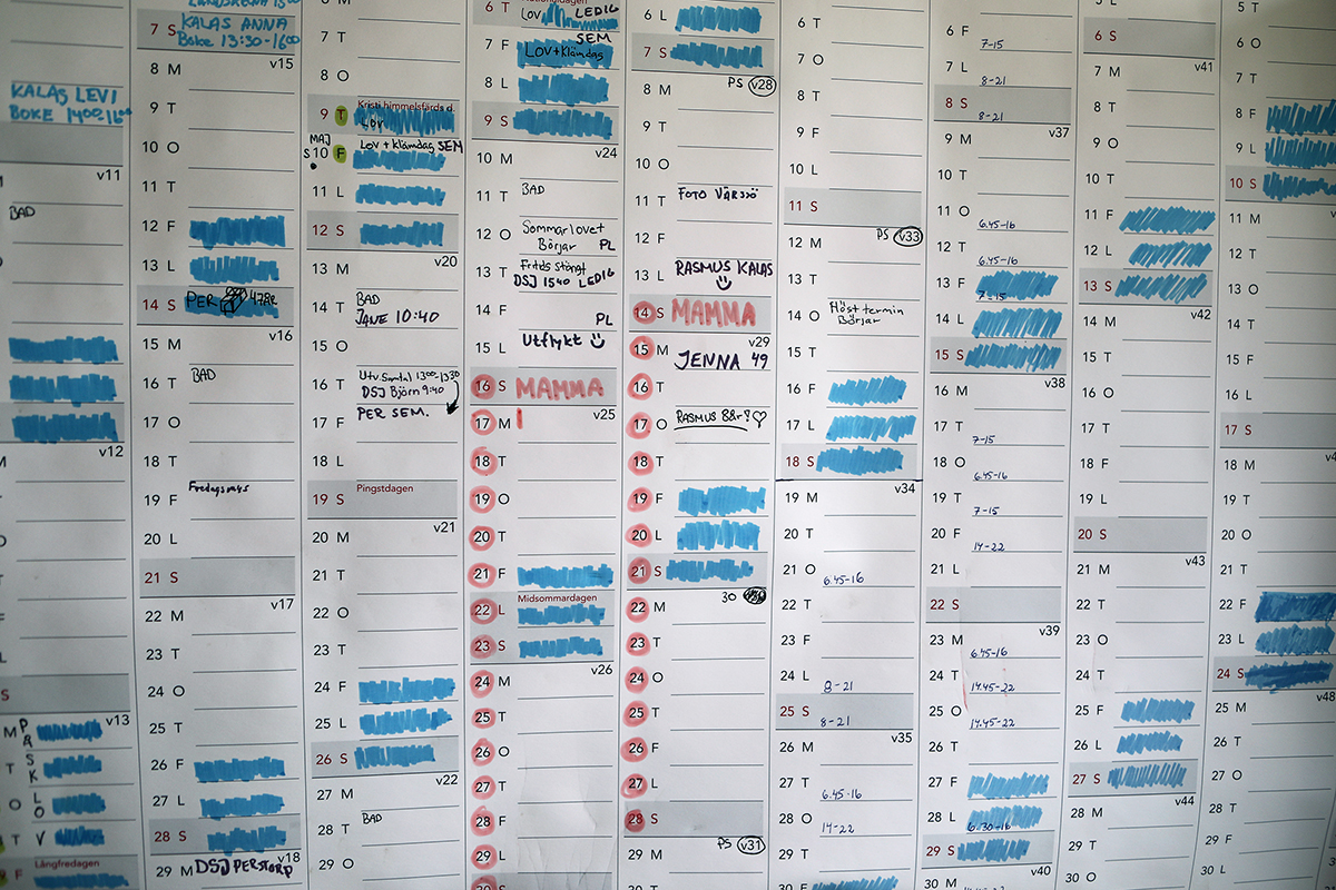 I hallen hänger ett jättelikt schema över deras tider. Hemmet är trevligt. Och väldigt välorganiserat.