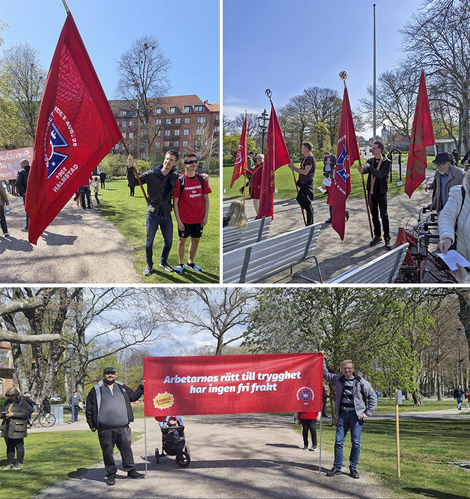 Transports avdelning 25 deltog i förstamajfirandet i både Varberg (bilden högst upp till höger) och Halmstad (överst till vänster och undre bilden).