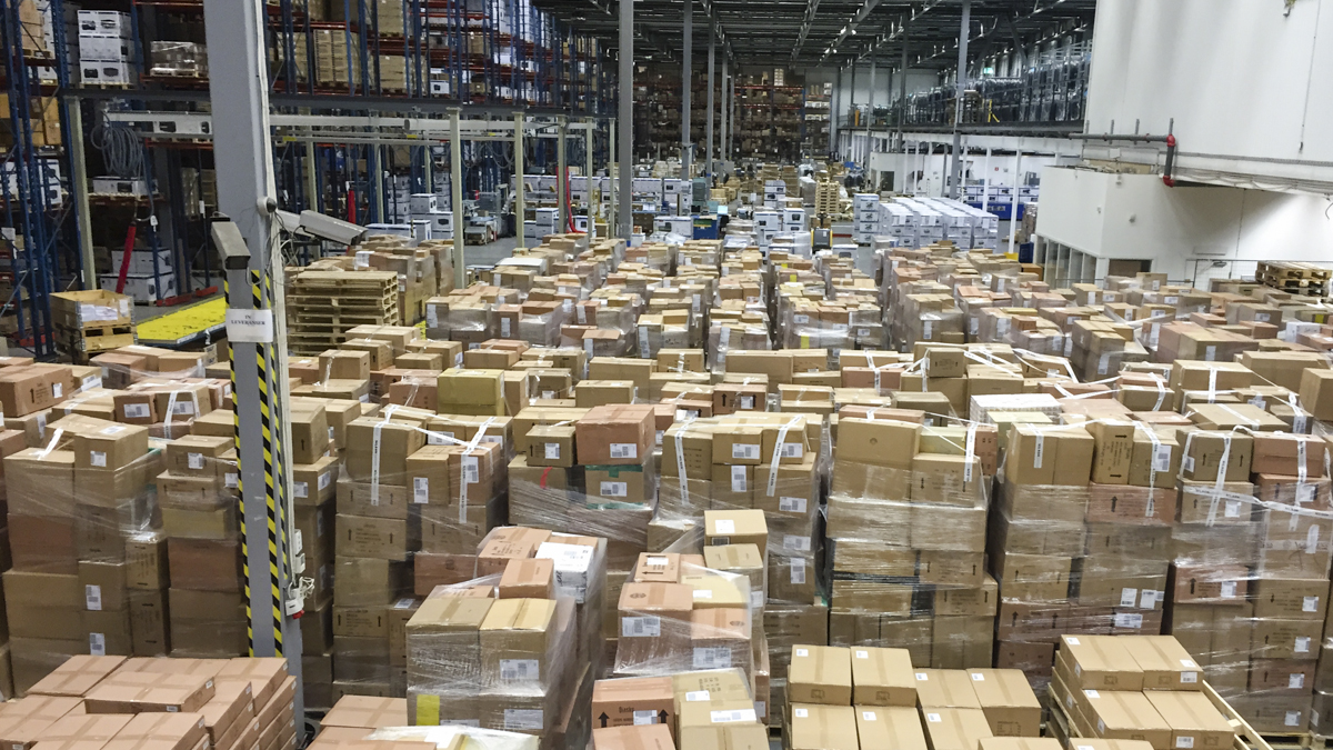 I Göteborg har lagerarbetarna från Texab till uppgift att manuellt lossa containrar som kommer till två av Postnords storkunder – skokedjan Nilson shoes och Brother, som tillverkar kontorsmaskiner.