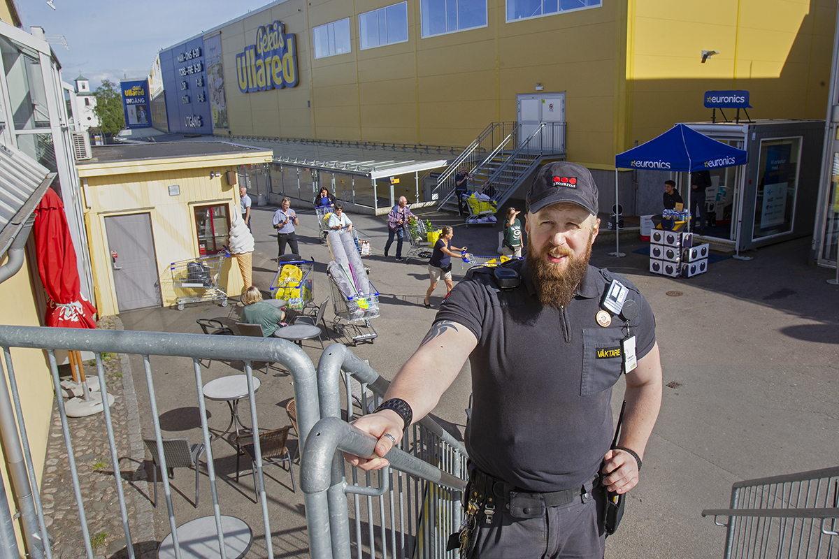 Fast det finns att göra. Normalt får vi släppa in högst 7 000 besökare åt gången i varuhuset. På grund av corona är det begränsat till 3 000. Det är vår uppgift att hålla koll på att reglerna följs, säger Stefan Gustafsson, väktare och huvudskyddsombud på Securitas.