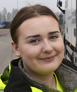 Moa Sääv får prova på blandade körningar under sin praktik vid ett åkeri i Mönsterås, grannkommun till Oskarshamn. Hon får även köra olika typer av anläggningsmaskiner.