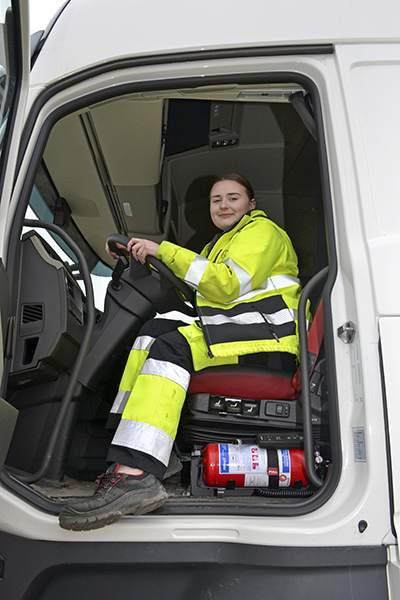 Karolina Järback praktiserar på KÅIS Transport AB som kör för Arla i Kalmar. Och hon stortrivs med att köra mjölktransporter.