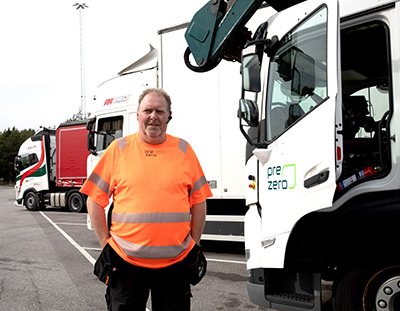 Mikael ”Micke” Ribbestad kör containeravfall för Prezero i Norrköping. Han har dock haft bilen med sig hem till Rejmyre och därifrån startat sin slinga.