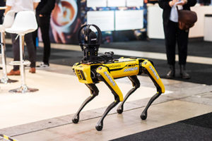 På eftermiddagen promenerar en wifi-styrd robothund i gångarna. Den finns ännu inte ute på marknaden, men väcker mycket uppmärksamhet. I övrigt rymmer mässhallen det mesta inom säkerhet och bevakning, både teknik för framtiden och konkreta ting – som avspärrningsband – och all slags utrustning för brandförsvar.
