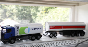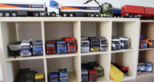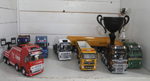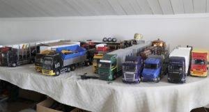 Jonas har plockat ner en hel drös modell-lastbilar från övervåningen till köket. Minst lika många – i skala 1:25 – trängs i hans garage. De är gjorda efter verkliga modeller, som rullar på vägarna. Beställningarna rullar också in från åkerier och privatpersoner, som vill föreviga sina klenoder.