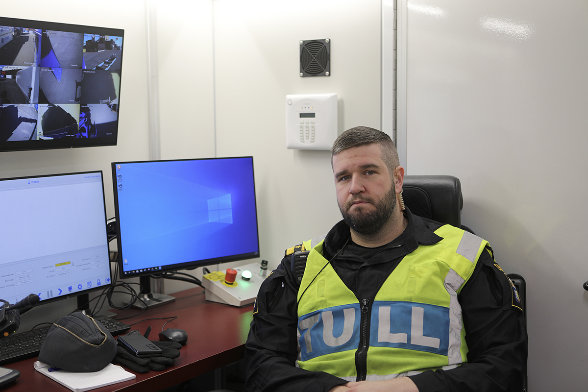 Han leder tullarna när Transportarbetaren är med. Gruppen arbetar dagtid och utgår från Trelleborg, men tjänstgör även i övriga hamnar i Tullverkets region syd. Ofta i Helsingborgs hamn, som egentligen är två. Dels den mer publika färjehamnen, med både många turister som turar och mycket tung trafik till och från Danmark. Dels containerhamnen.