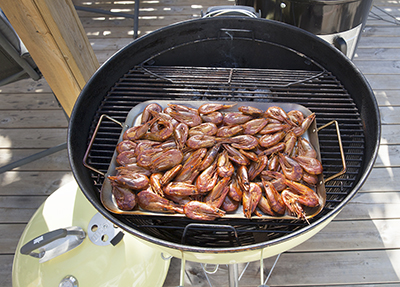 Så småningom tror han att nybörjargrillaren också kan skilja på direkt värme rakt ovanför kolen – och indirekt värme när maten ligger på en annan del av gallret, vid sidan av kolbädden. Och då är det inte långt kvar till att börja röka mat i sin vanliga grill. Köp hem en påse rökflis, och studera tekniken i receptet på rökta räkor.