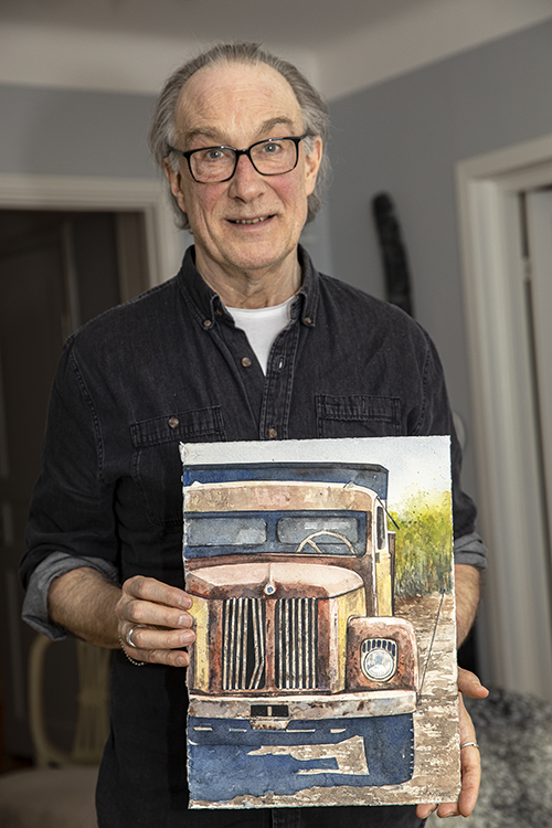 Att sitta med skissblock i knäet är inte hans grej. John Eyre fotar på plats och väljer sen de bästa bilderna. Akvarellfärgerna tar han fram i ateljén på Gotland, som han delar med sin konstnärsfru, Carina Moberg Eyre. Han har testat både olja och akryl, men fastnat för akvarell.