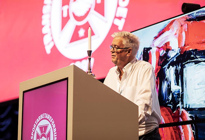 – Jag känner medlemmarnas stöd hela vägen, sa Tommy Wreeth i öppningstalet med syfte på Tranports linje i trygghetsfrågor som lagen om anställningsskydd (LAS) och omställningsstöd.