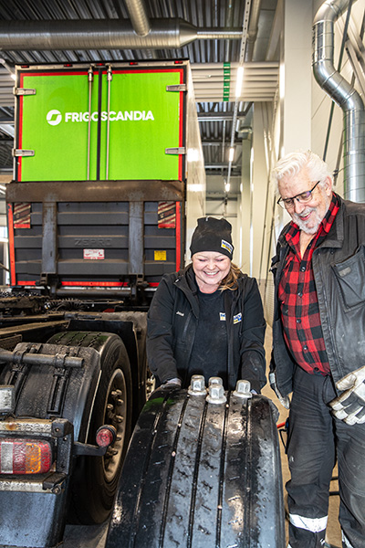 – Ganska många, kontrar Jennie som rycker ut med verkstans lastbil när förare av tunga fordon behöver hjälp på plats eller hjul ska hämtas för skifte på verkstan och köras tillbaka igen till lantbrukare, hamnar och företag.