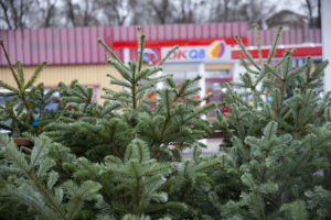 Utanför bensinstationen i det lilla samhället i Bergslagen står julgranar till försäljning lutade mot staketet, både silvriga kungsgranar och vanliga rödgranar. I butikens skyltfönster finns paket, ljusstakar och julgodis. Det är 22 dagar till dopparedan.