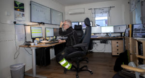 Han är ganska ny på företaget, började jobba i december och har sitt riktiga hem i Kalix. När han arbetar bor han i en husvagn, 150 meter från jobbet.