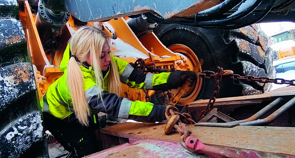 – Det händer att jag flyttar skopor som väger 70 ton. Då är det viktigt att ha bra teknik, säger hon.