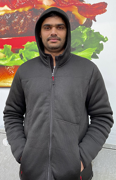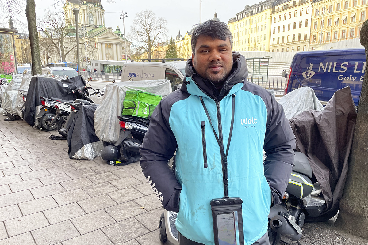 Gaganderp Singh Dmillon, som också jobbar som bud, kom från Indien för ett år sedan.