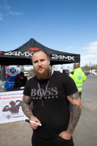 Norske Emil Jedmejad, som körde från Haparanda dagen innan, stannar också och pratar. Han ska vidare till Varberg och tycker att det är toppen att transportarna är på plats här i Hudiksvall.