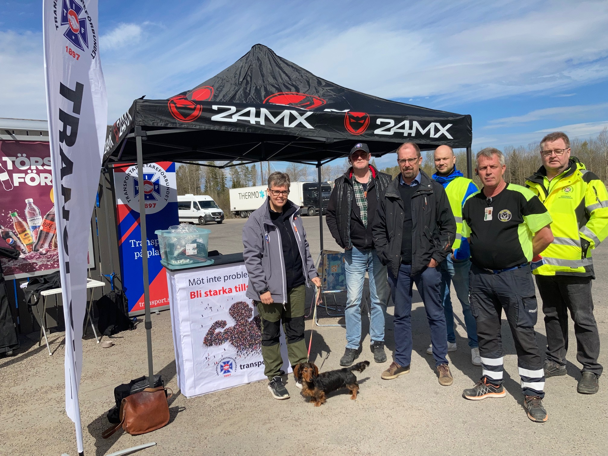 Facket. Valet, avtalets ob-tillägg, försäkringar, medlemsvärvning och förbundets värderingar. Och en snabb fika med bulle – i dag genomförde Transports fyra nordligaste avdelningar en gemensam manifestation och mötte gamla och blivande medlemmar nära motorvägen.