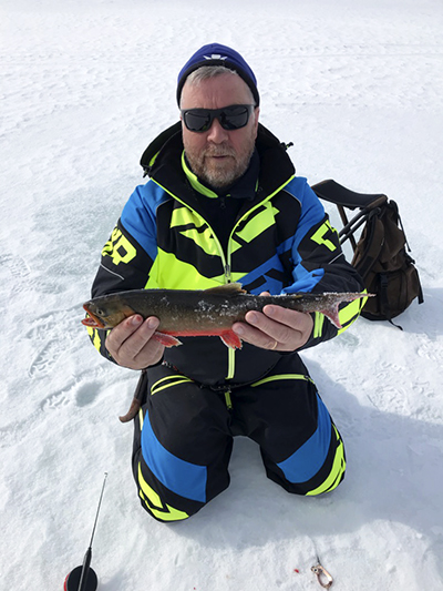 Trots att solen skiner på snön i ”paradiset”, Sandvikens fjällgård, och Martin Nilsson fiskar röding tycker han det känns jobbigt att vara så mycket ledig.