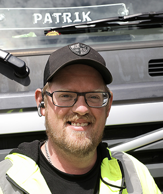 Bruna teddytärningar dinglar i vindrutan med Patriks namn på en skylt. Han tar en klunk Pepsi och styr mot nästa ställning av metall. Patrik började köra dragbil direkt efter transportgymnasiet och lumpen. Mc-kortet hägrade i många år och förra hösten kunde han äntligen fräsa runt en hel kväll på sin vita Kawasaki Z750.