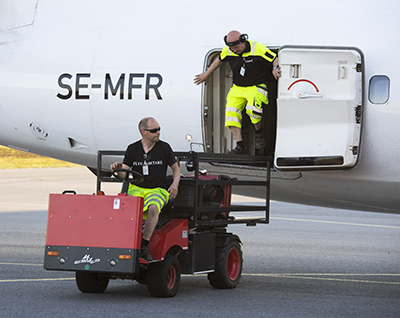 André Edlund har en annan bakgrund, var maskinförare i familjeföretaget och körde traktor. Användbart i hanteringen av flygplatsens maskinpark med en del inköp från Arlandas utbytta.