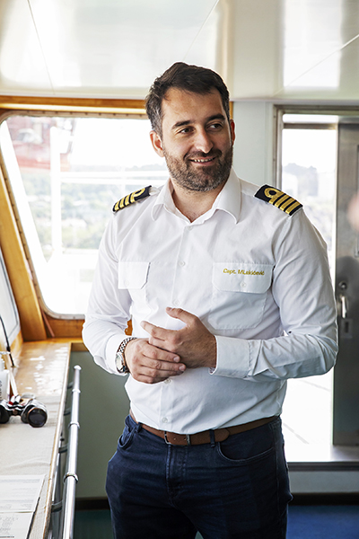 – Jag älskar mitt jobb, men om min son frågade mig skulle jag aldrig råda honom att gå till sjöss. Det är mycket stress, säger kapten Lakicevic.