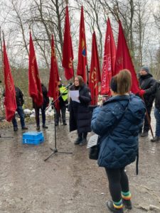 Två månader senare, i snöslask i den grå novemberdagen läste Zandra Michal, Kommunals sektionsordförande, namnet på tio andra iranska kvinnor: